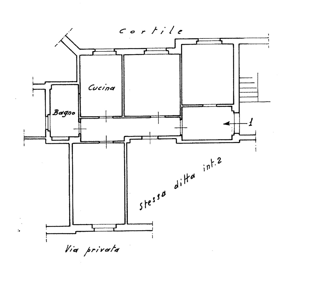 Luminoso Appartamento posto a Primo piano con doppia esposizione su corte interna e su via privata interna.