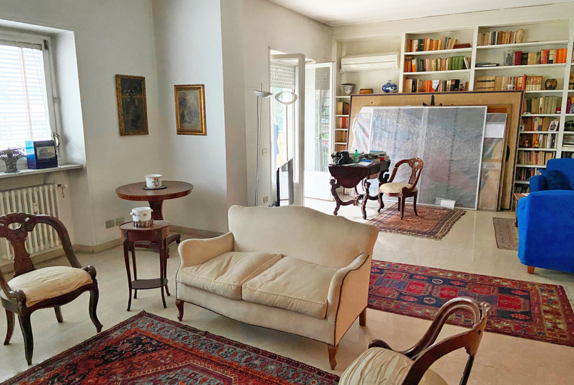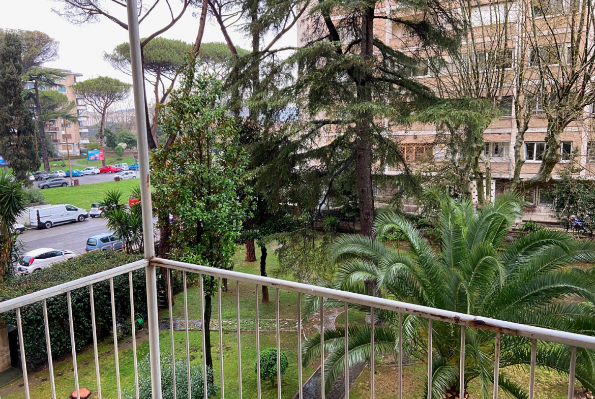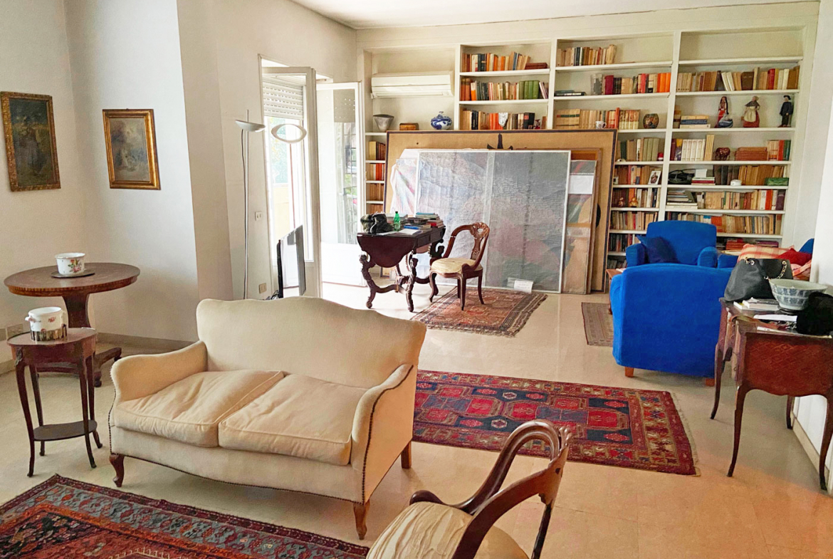adiacenze Ponte Milvio. Appartamento in vendita di Superfice complessiva 180 mq oltre ampio box in garage. Elegante complesso residenziale anni’ 50 con giardino condominiale esclusivo sui tre lati del perimetro, accessori comuni aree verdi e tennis.