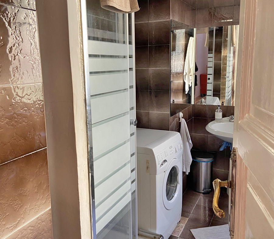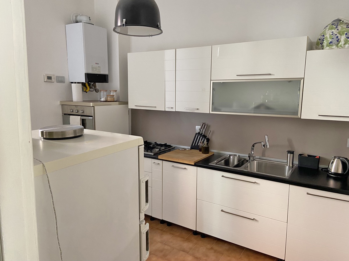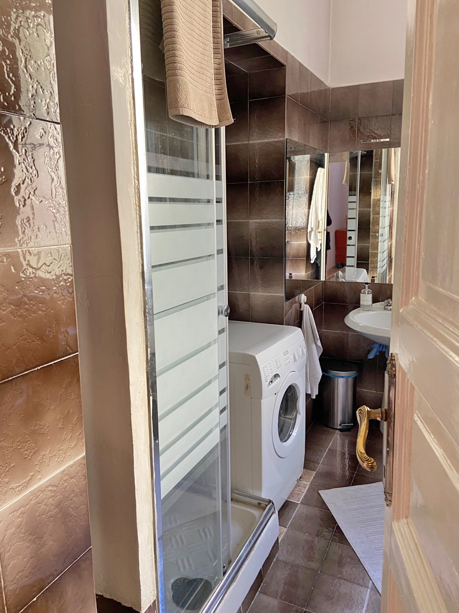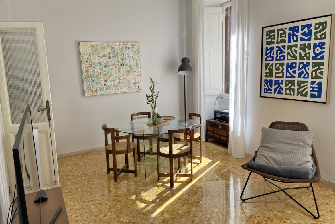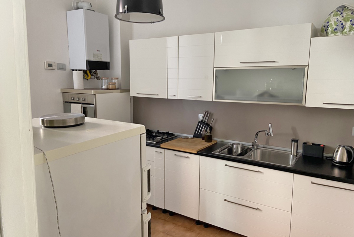 L’attuale distribuzione interna divide l’unità attraverso un ingresso ed un corridoio, soggiorno doppio con due finestre su corte interna, 3 camere, di cui due su corte ed una su strada, cucina, 1 servizio con possibilità di definire un secondo servizio nell’attuale ripostiglio.